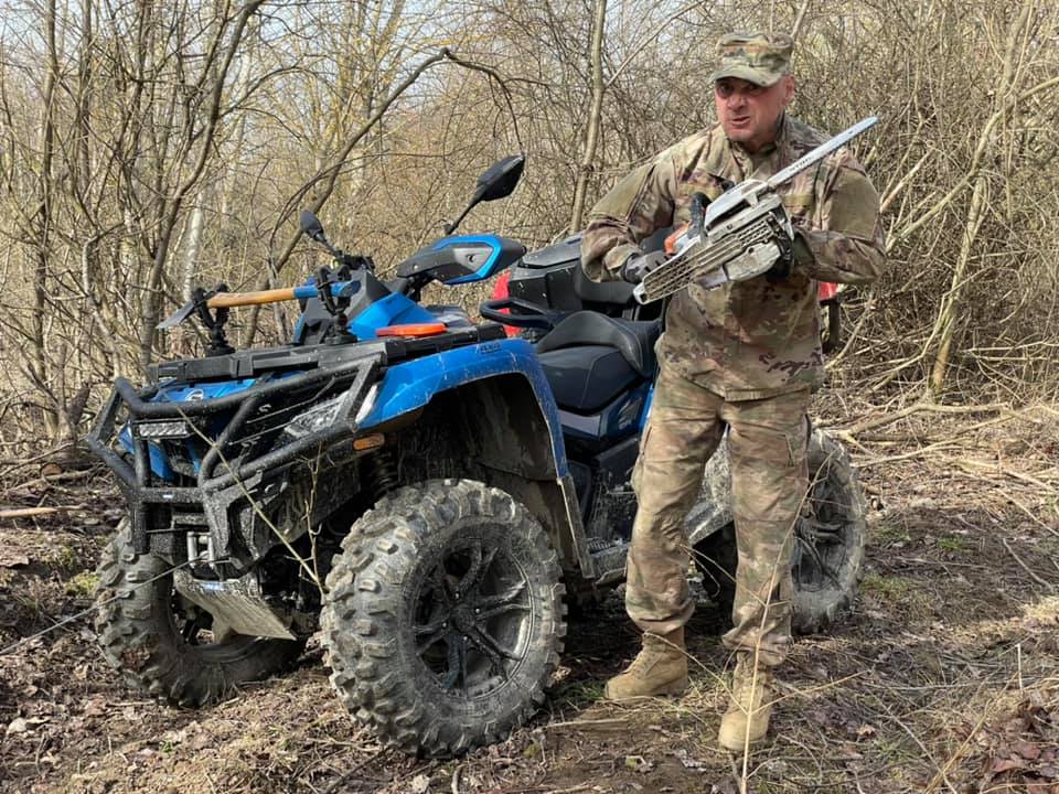 " ke čtyřkolce při úpravě tratě pro enduro motorku...